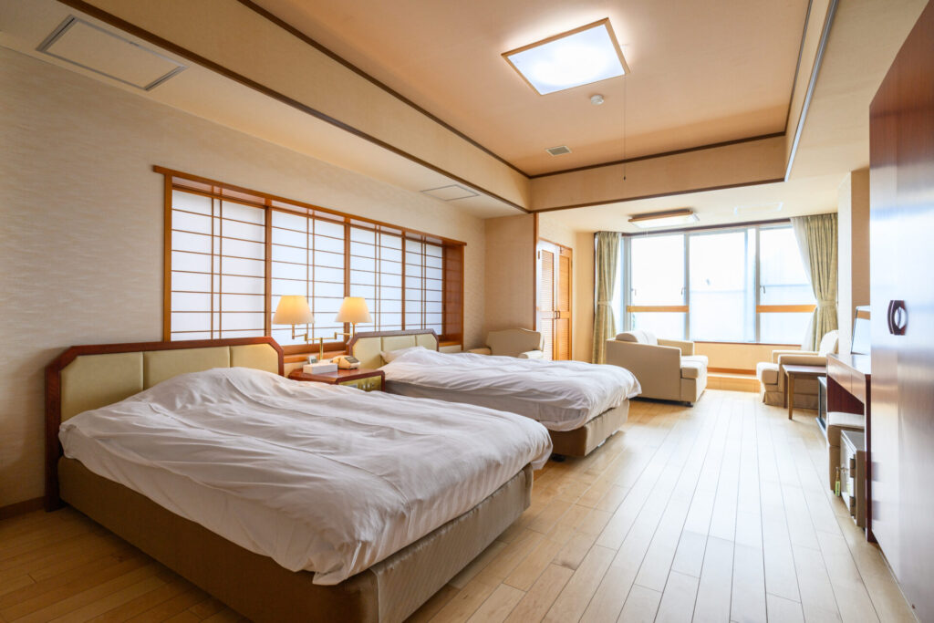 障子越しに広がるやさしい光が迎える、伊豆高原の和モダン客室。