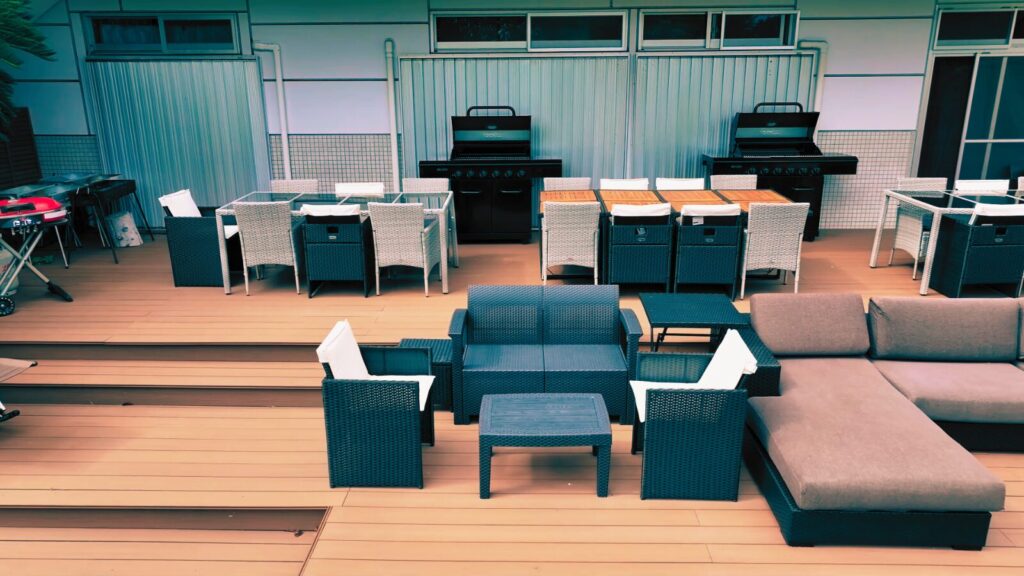 海風と緑に包まれた屋外BBQエリアでは、家族や仲間と炎を囲む特別なディナーを。