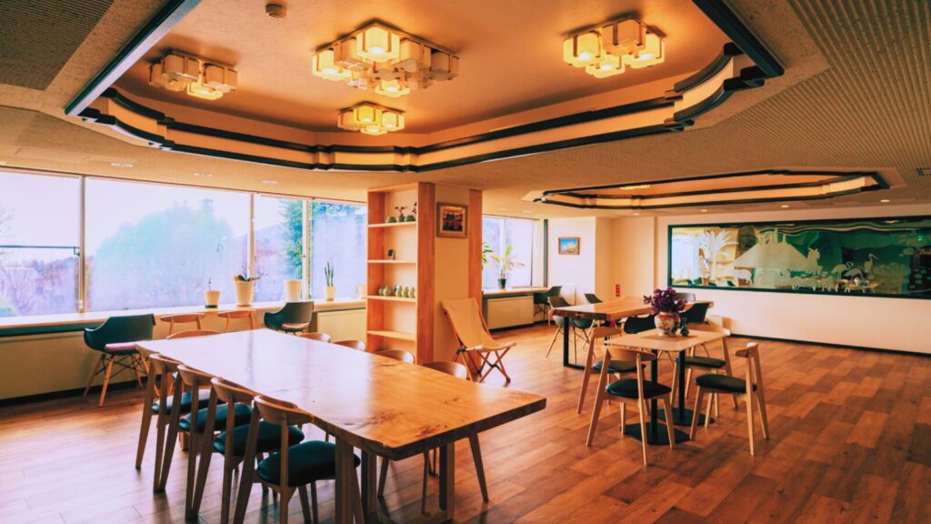穏やかなBGMと柔らかな照明が旅の気分をほどよく整えてくれます。滞在中の“ほっと一息”に最適な共有スペースです。