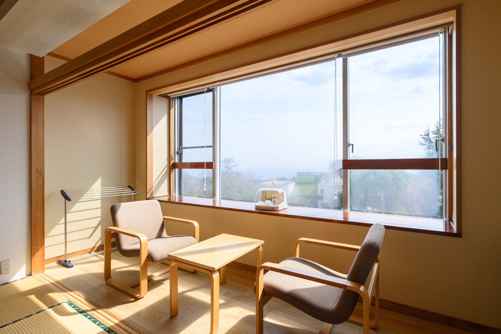 障子越しに広がるやさしい光が迎える、伊豆高原の和モダン客室。